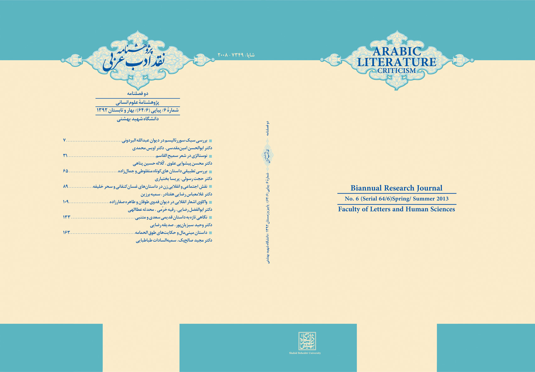 سردبير: دكتر حجت رسولی (استاد گروه زبان و ادبيات عربی، دانشكده ادبيات و علوم انسانی، دانشگاه شهيد بهشتی)