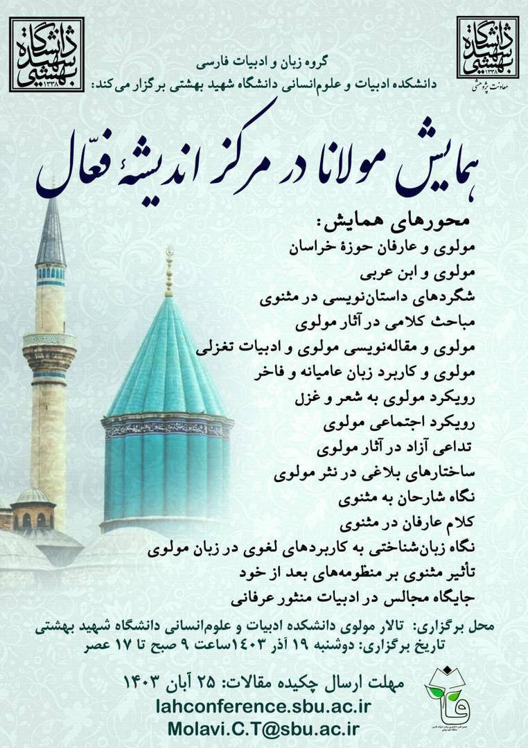 19 آذر ماه 1403 ، تالار مولوي دانشكده ادبيات و علوم انساني دانشگاه شهيد بهشتي