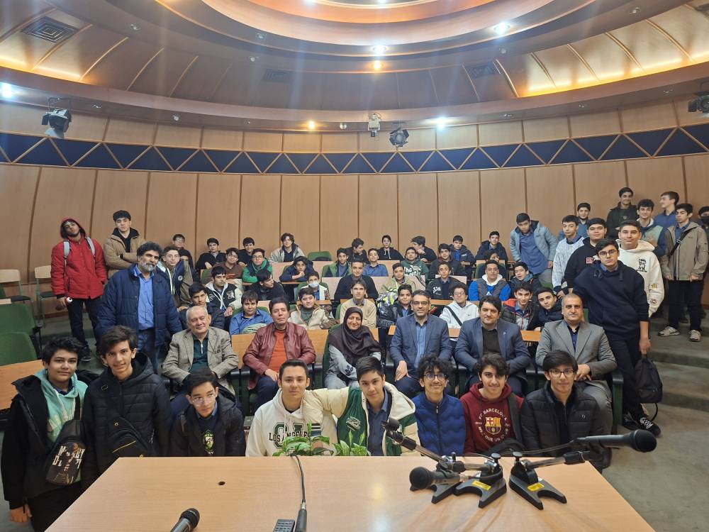 در جریان این مراسم، سرکار خانم دکتر حمیدی، معاون محترم پژوهشی و فناوری دانشگاه شهید بهشتی و دکتر حجاریان رییس محترم دانشکده علوم ریاضی، نیز حضور داشتند و ضمن گفتوگو با دانشآموزان، به پرسشهای آنان درباره مسیرهای علمی، پژوهشی و آینده تحصیلی پاسخ دادند. ایشان با تأکید بر اهمیت پژوهش در دوران دانشآموزی، دانشآموزان را به تقویت روحیه پرسشگری، خلاقیت و علاقهمندی به فعالیتهای علمی تشویق کردند.