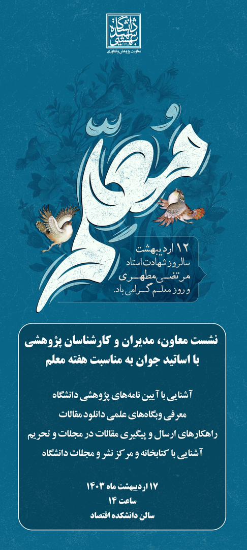 به مناسبت روز معلم (12 اردیبهشتماه)، معاونت پژوهشی برگزار می کند: