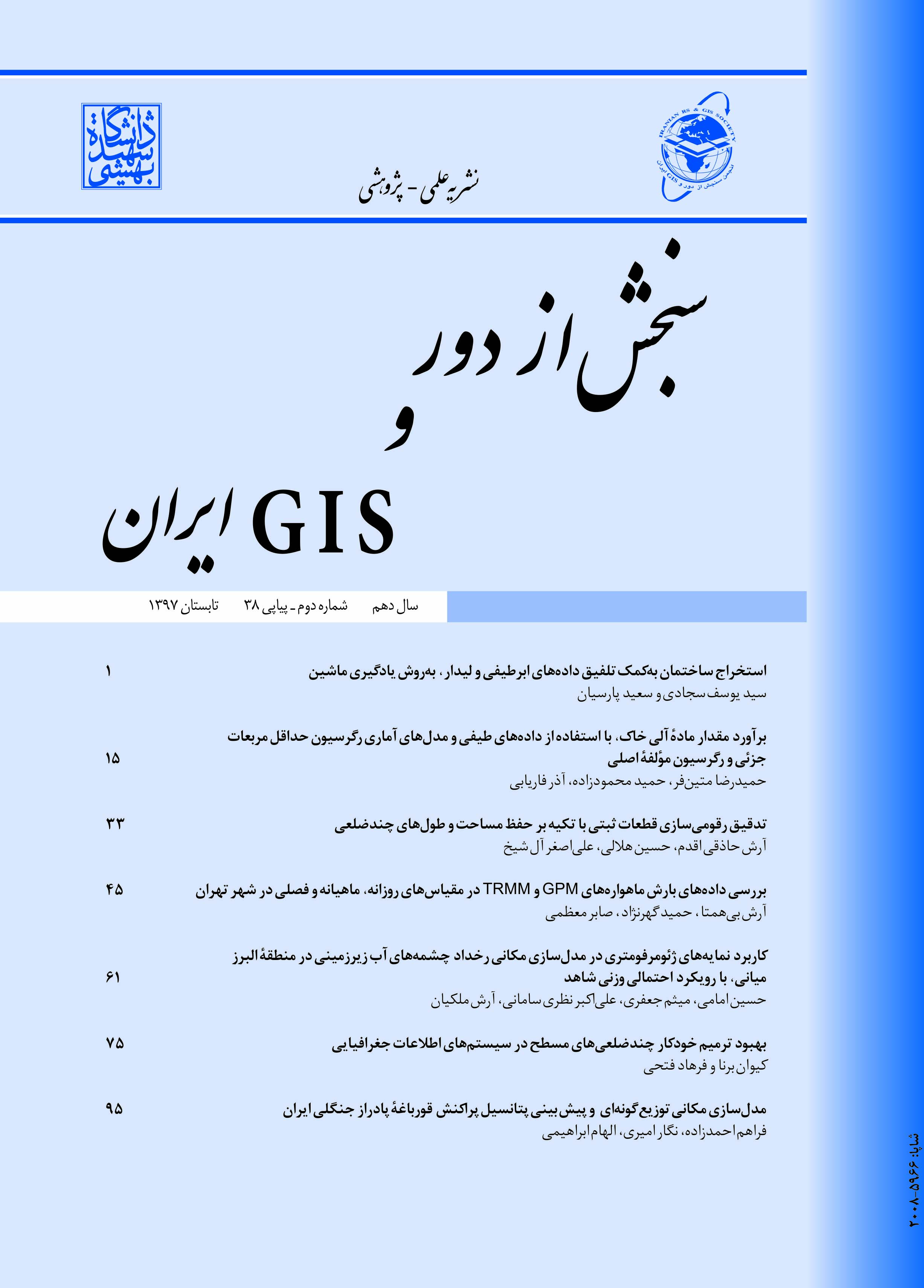 نشریه علمی- پژوهشی سنجش از دور و GIS ایران وابسته به انجمن سنجش از دور و GIS ایران و دانشگاه شهید بهشتی می باشد این نشریه بر اساس مصوبة کمیسیون نشریات وزارت علوم، تحقیقات و فناوری به شماره  10682/3 مورخ 28/12/87 موفق به دريافت رتبه علمی-پژوهشی گردید، اولین شماره آن در بهار سال 1388 به چاپ رسید و در حال حاضر بصورت فصلنامه با 5966-2008 ISSN و به زبان فارسی دستاوردهای علمی، پژوهشی محققان کشور را در زمینه های مرتبط با علوم سنجش از دور و GIS منتشر می نماید.