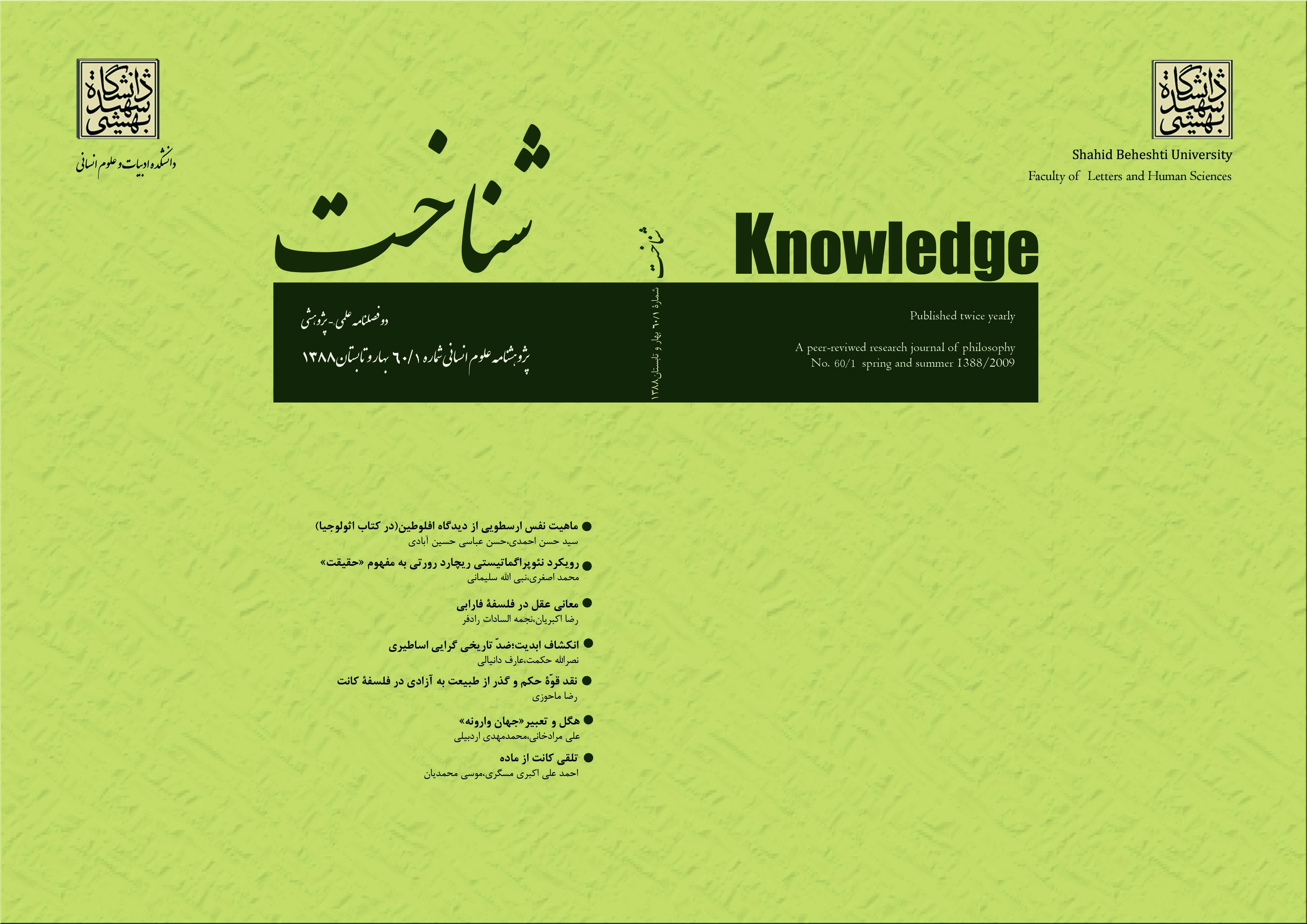 سردبیر: دكتر نصرالله حكمت (استاد گروه فلسفه، دانشكده ادبیات و علوم انسانی، دانشگاه شهیدبهشتی)